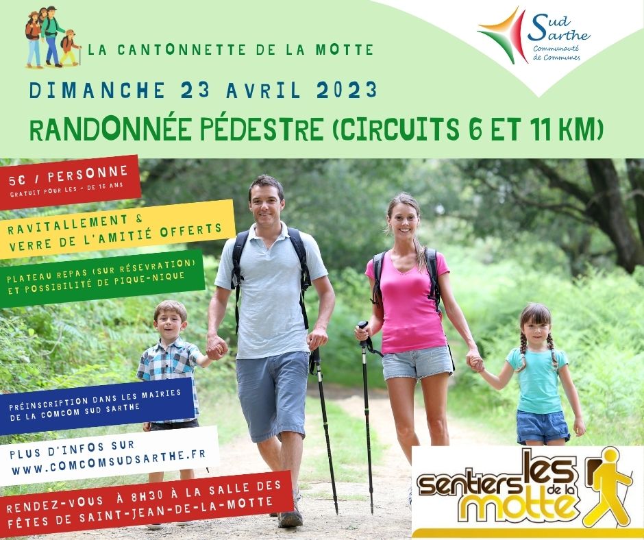 La Communauté de Communes Sud Sarthe, la Commune de Saint Jean de la Motte et l’ association des Sentiers de la Motte organisent le dimanche 23 avril une randonnée pédestre à saint Jean de la Motte: la Cantonnette.